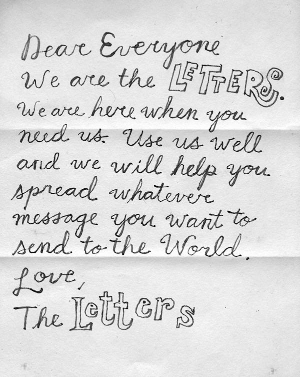 Just as I was about to publish this post, an amazing thing happened: A letter from letters arrived in the mail. I think it was written to you. Here it is.