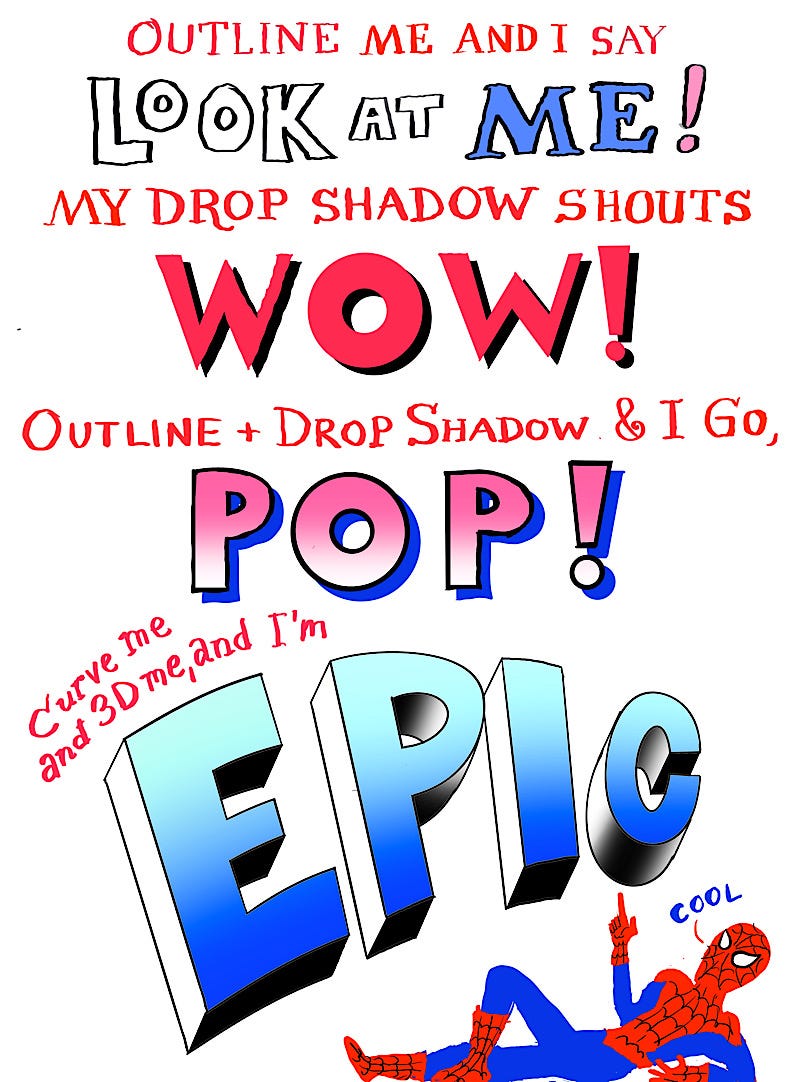 Outlines, drop shadows and 3D-ing your letters adds typographic punch.