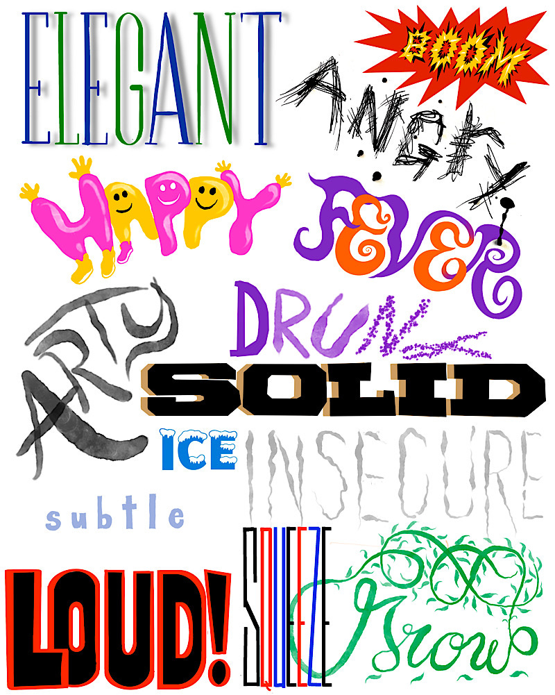 Letters are visual, right? And visuals can create a mood, right? Which is why artists, calligraphers and sign painters have been creating letters with personality ever since some dude invented the alphabet. Below is a cheat sheet with some ideas of how you can depict a mood with your letters. For a fun exercise, pick an emotion or a feeling and depict it with letters. You’ll be surprised how easy it is—as long as you don’t pick an obscure emotion like schadenfreude or weltschmerz.