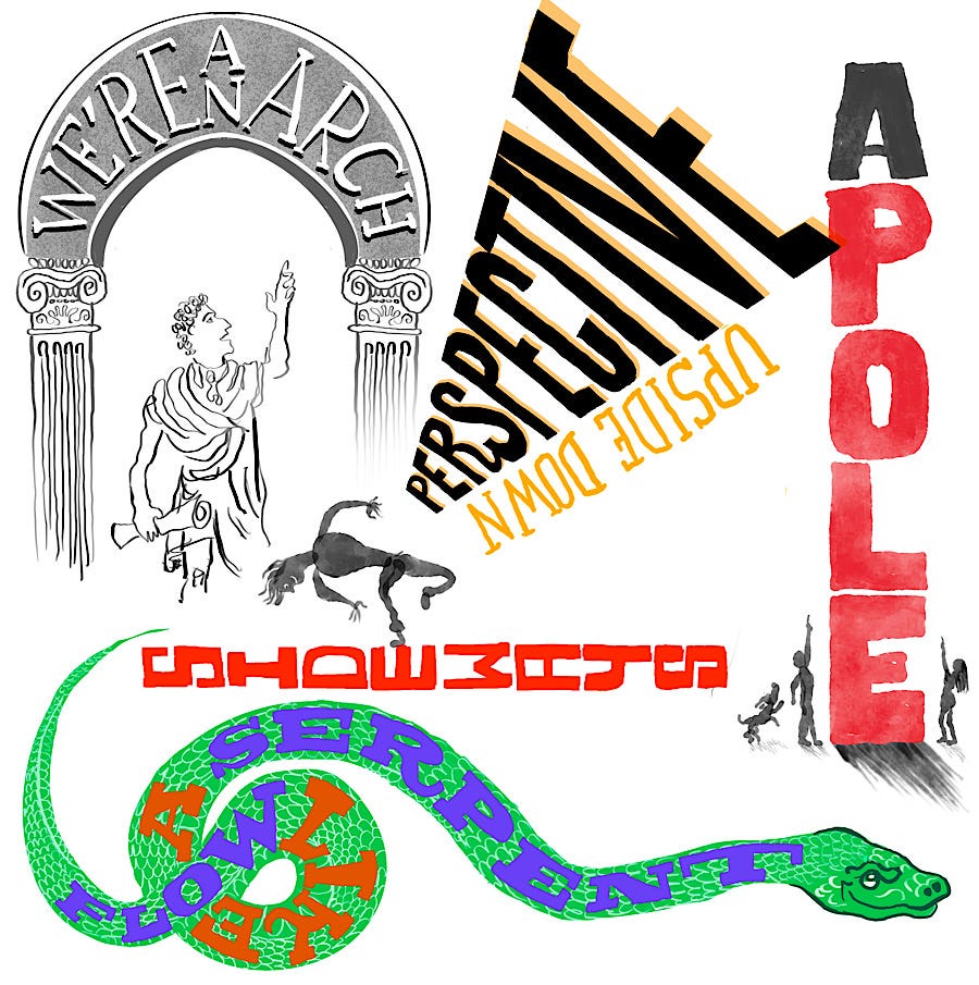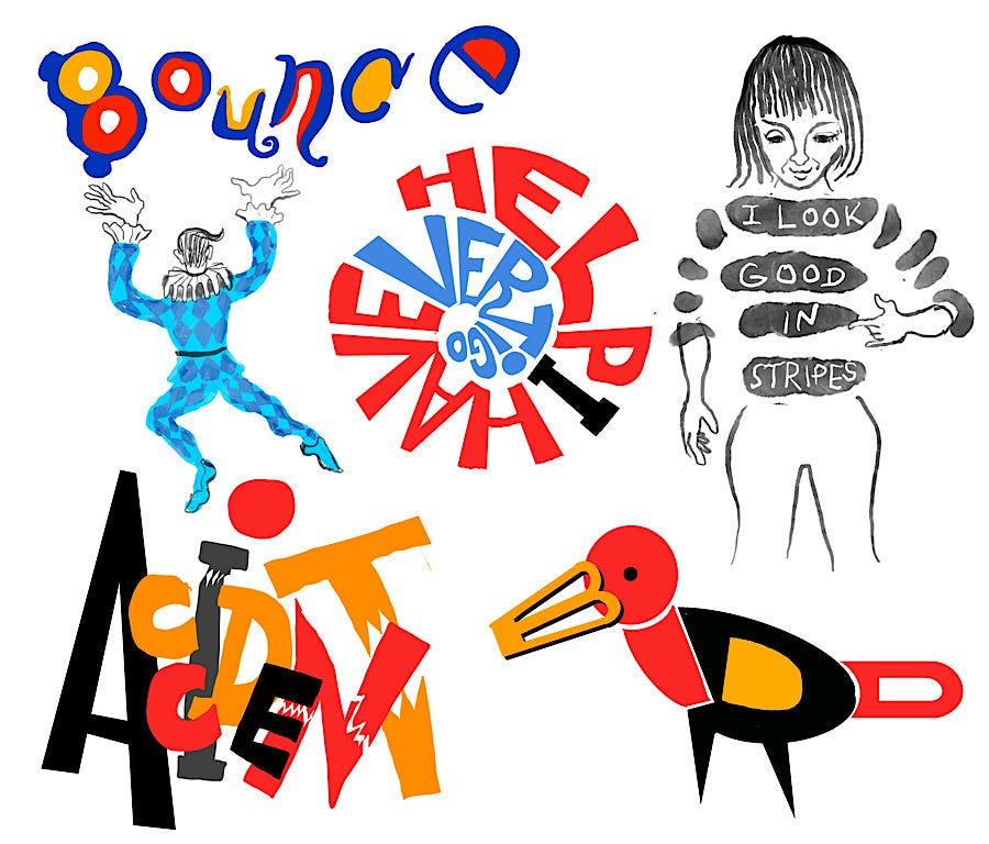 One last thing. Everyone has their own unique lettering styles. There are some Substack artists with amazing lettering styles that you can study and learn from. There’s the breezy, super-friendly, yet masterful lettering of Helen Stark’s The Time Forager’s Club that makes you feel like you’re peering into one of Darwin’s sketchbooks, or the wacky outlier lettering you can find in the Do It Ugly Project or the brash, eye-popping, attention-getting lettering of Zsofi Lang that kind of makes you feel like you’re in Times Square.